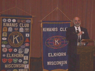 Of course, there were a few volunteers to help Lorn out with some of their own favorite Irish humor. Dr. Ralph Smith from the Lake Geneva Club (hmmm... are we getting warmer locating the gavel?...) tells one of his favorites.